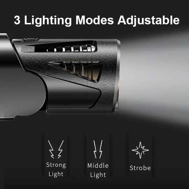 - Fácil de operar- Esta luz puede cambiar de modo presionando un botón (alto-estroboscópico medio).